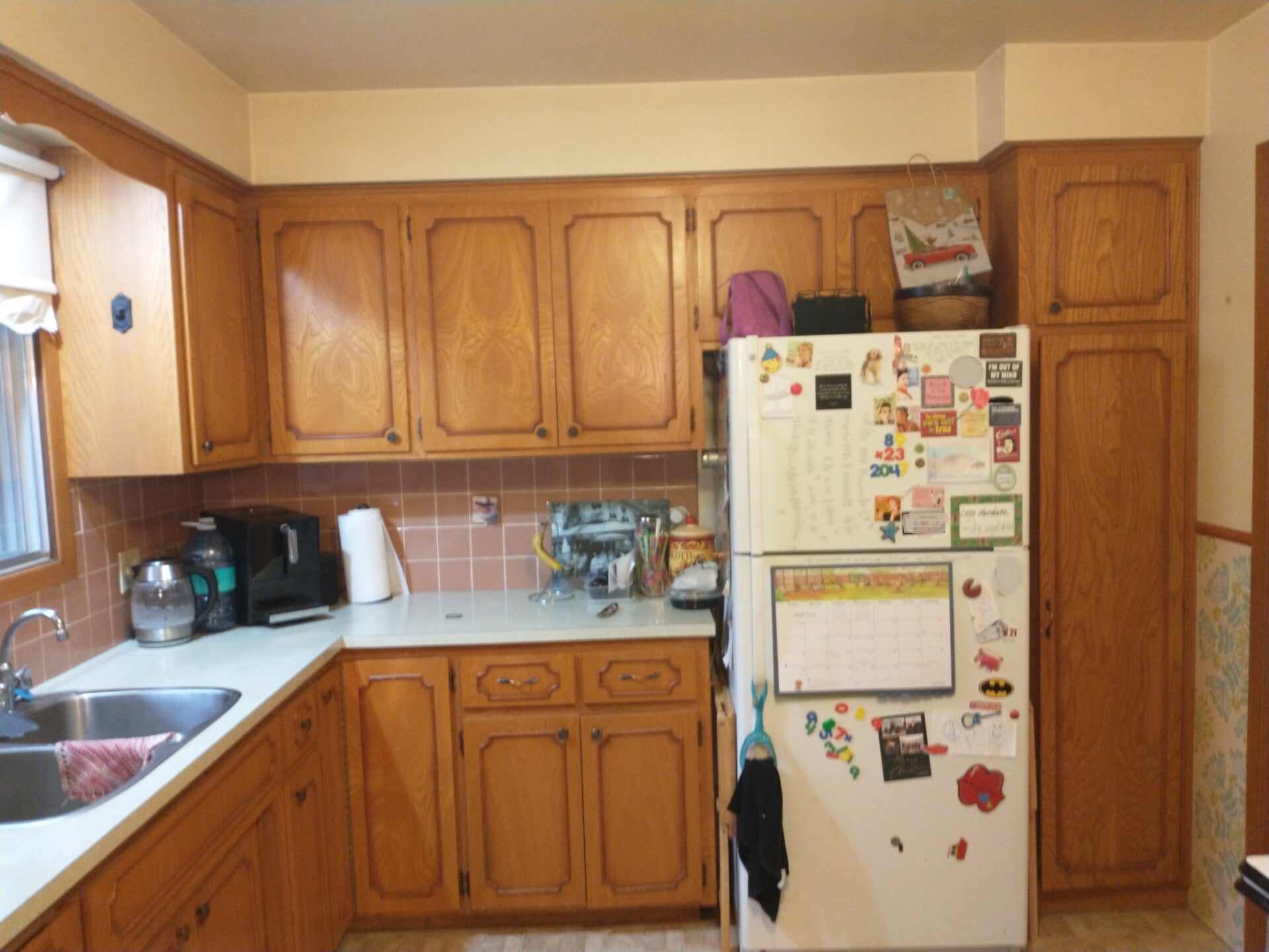 An original, outdated kitchen awaiting a modern transformation by M&F KITCHEN AND BATH.